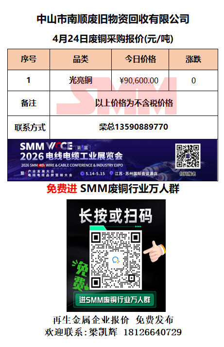 4月24日中山南顺 废铜采购报价