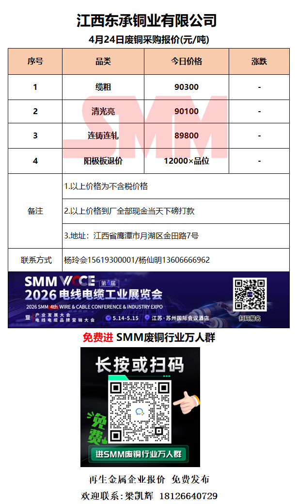 4月24日高诺(衡阳)铜业 废铜采购报价
