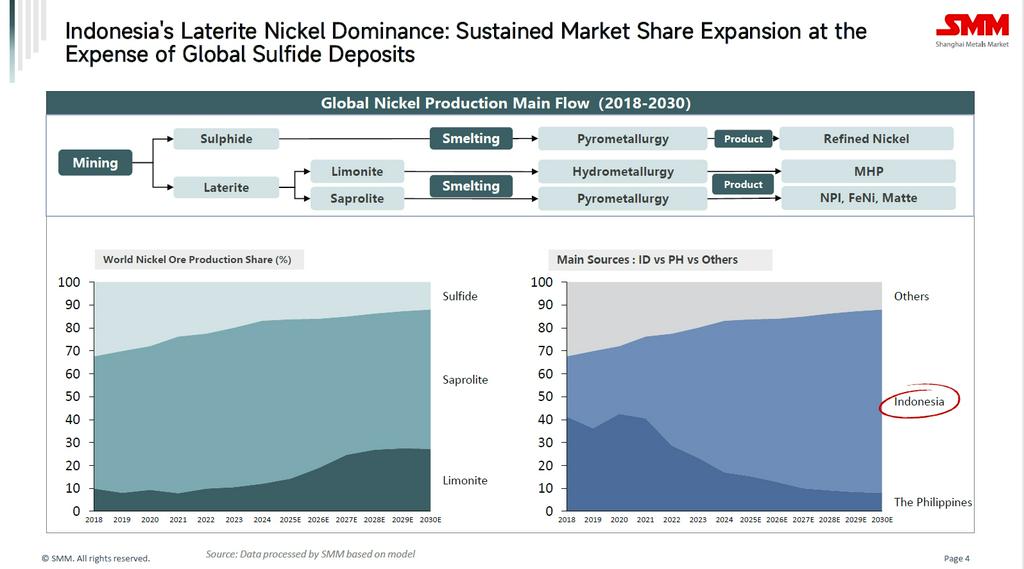 从2018年至2030年(预计),全球镍矿石生产的结构正在发生根本性转变: