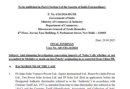 2025年9月30日,印度商工部、贸易救济总局(DGTR)宣布,对原产于中国、韩国、泰国和越南的太阳能电池组件关键封装材料(包括POE胶膜和EPE胶膜)发起反倾销调查。此次调查由印度本土头部的胶膜企业RenewSys提请发起。值得关注的是,自2018年至2024年间,印度已先后两次对我国EVA胶膜实施反倾销调查,且自2019年至今已经对我国EVA胶膜产品征收反倾销税,随着此次EPE与POE胶膜被纳入调查范围,印度或将对我国光伏组件主要封装胶膜品类完成反倾销全覆盖。