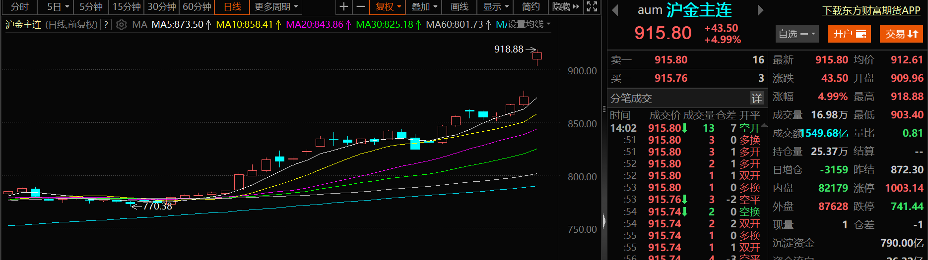 贵金属期股携手狂飙 沪金站上900大关 沪银涨逾3% 机构怎么看?【SMM快讯】