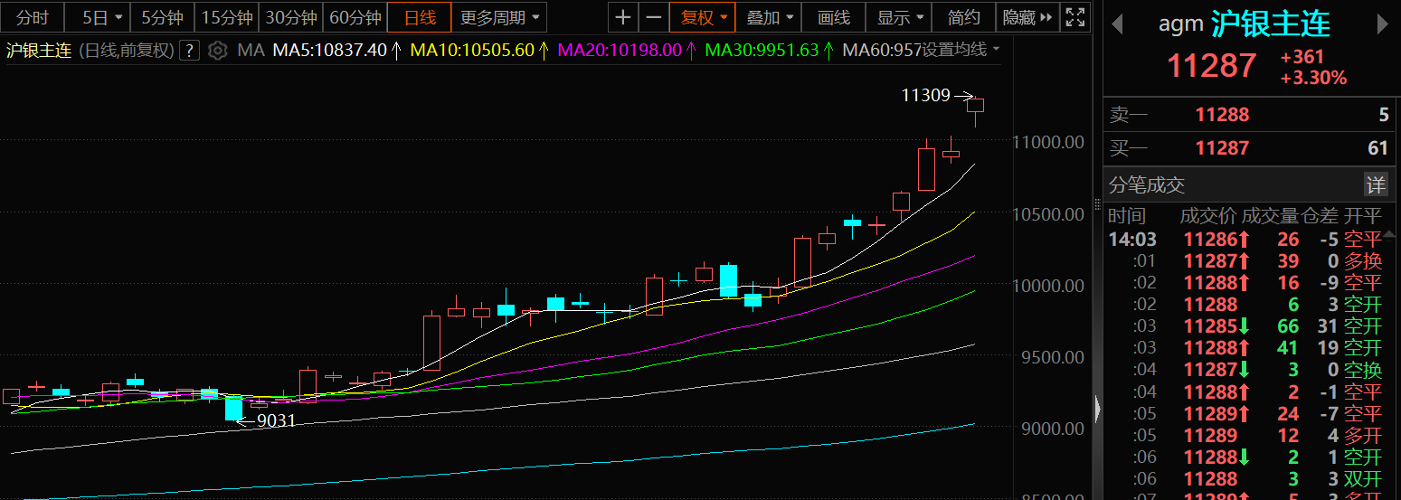 白银现货升破11000元/千克 下游普遍谨慎观望