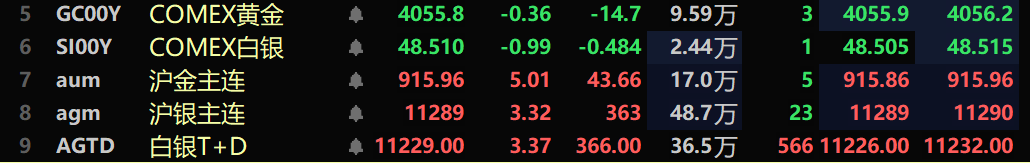 时隔近7年,美国政府再次关门,而当地时间周三,美国参议院第六次否决了两党相互较劲的政府拨款法案,市场对美国政府停摆以及日本和法国的政治动荡等的担忧,引发市场转向贵金属避险;2025年以来,全球央行黄金净购买量连续多个季度保持高位。中国央行也在持续购买黄金,截至2025年9月末,中国央行已经连续十一个月增持了黄金,这提升了市场对贵金属的信心;此外,市场对美联储降息的预期不断升温也提振了贵金属的市场表现,带动COMEX黄金和COMEX白银于10月8日分别刷新了历史新高至4081美元/盎司、49.195美元/盎司!受海外贵金属大涨双节假期大涨的提振,国内的贵金属期货10月9日早盘便跳空高开,截至10月9日14:02分左右,COMEX黄金跌0.36%;沪金主连涨5.01%,盘中刷新历史新高至918.88元/克;COMEX白银跌0.99%,;沪银主连涨3.32%,盘中刷新历史新高至11309元/千克;白银T+D涨3.37%,盘中刷新上市以来的历史新高至11345元/千克。