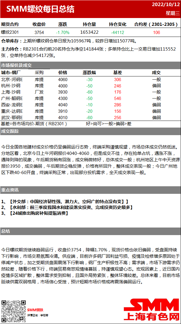 期螺盘面震荡下行 市场情绪受挫成交低迷【SMM螺纹日评】