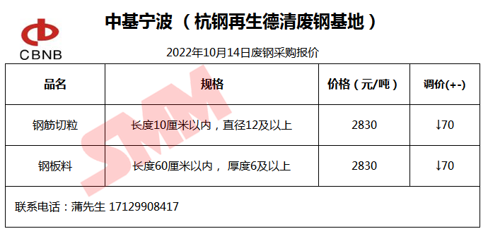 今日 中基宁波 (杭钢再生德清废钢基地) 废钢采购报价已更新,有货的朋友欢迎联系我们!