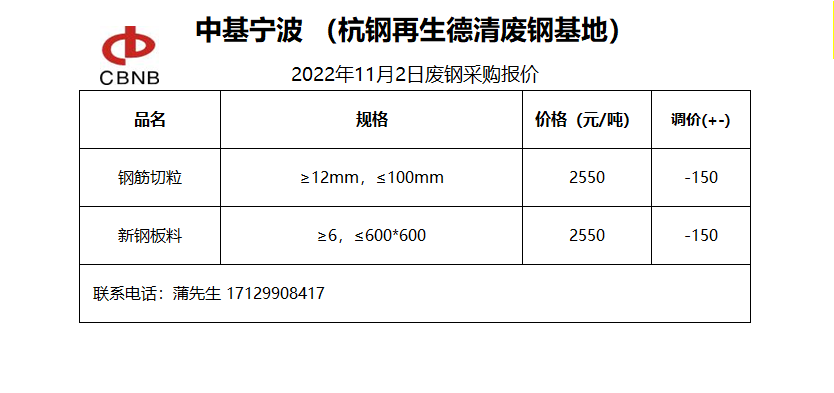 今日 中基宁波 (杭钢再生德清废钢基地) 废钢采购报价已更新,有货的朋友欢迎联系我们!