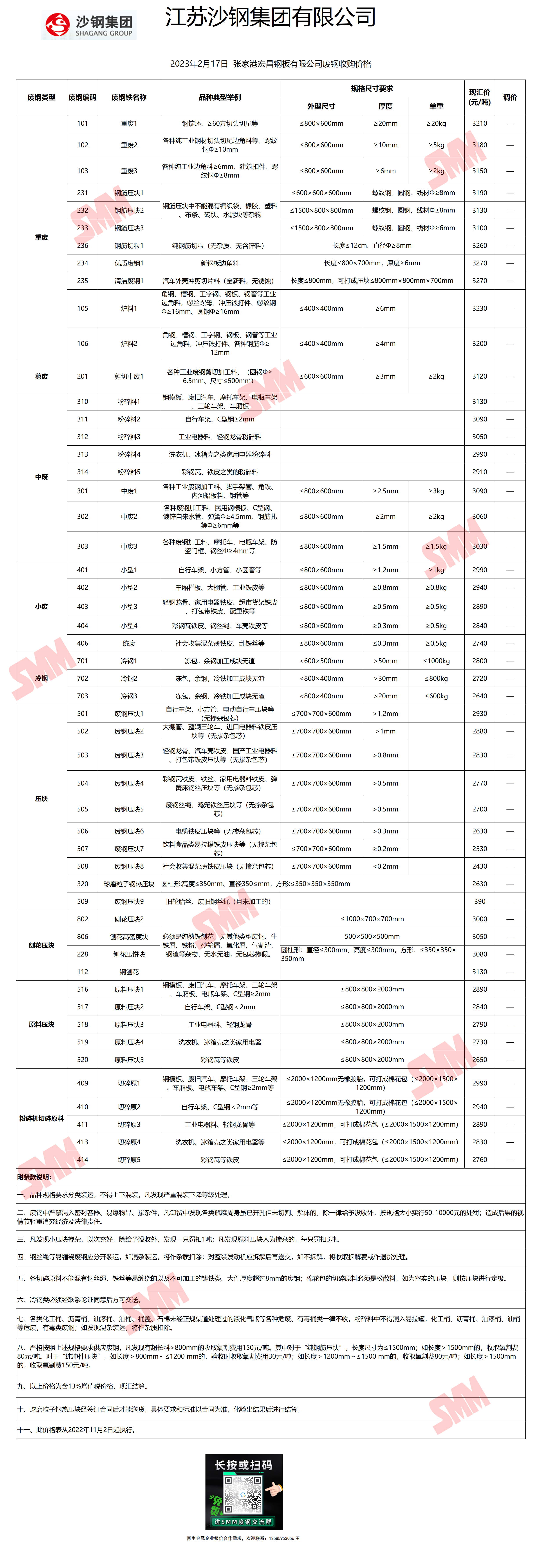 今日沙钢张家港基地 废钢收购报价已更新,有货的朋友欢迎联系我们!