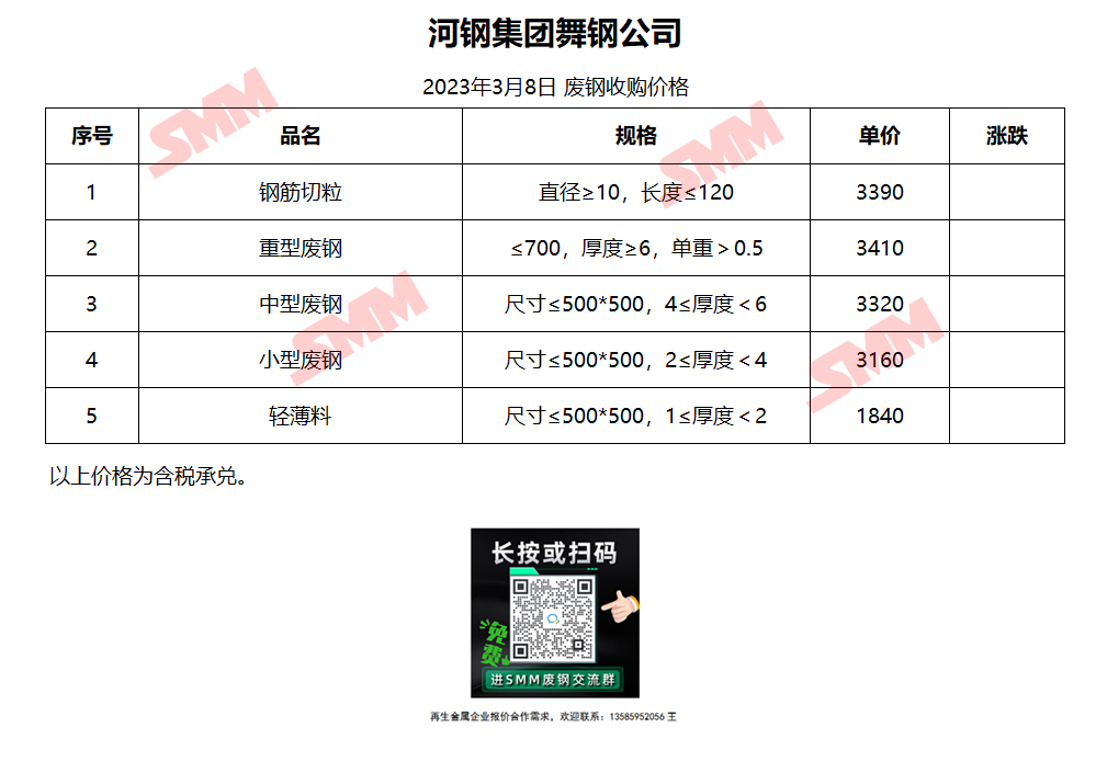 3月8日 河钢集团舞钢公司 废钢收购报价
