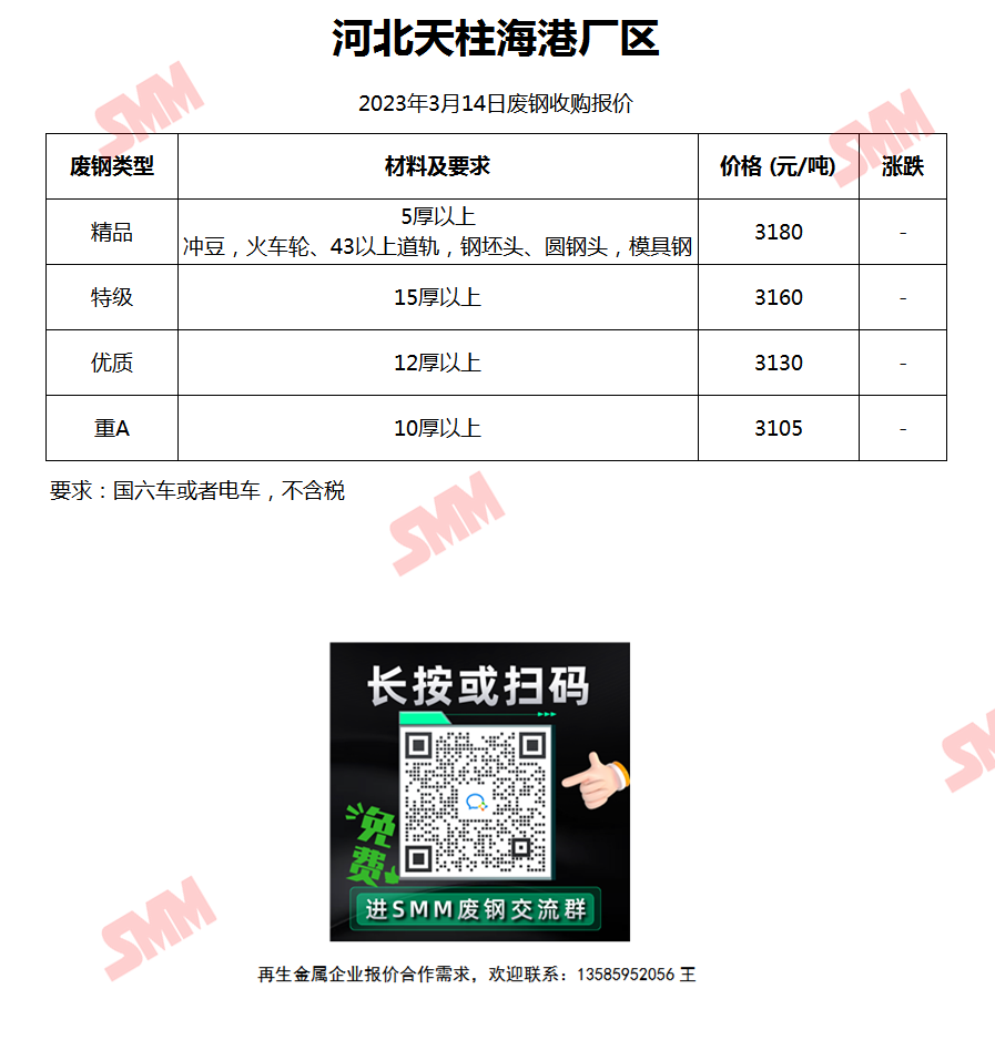3月14日河北天柱海港厂区 废钢收购报价