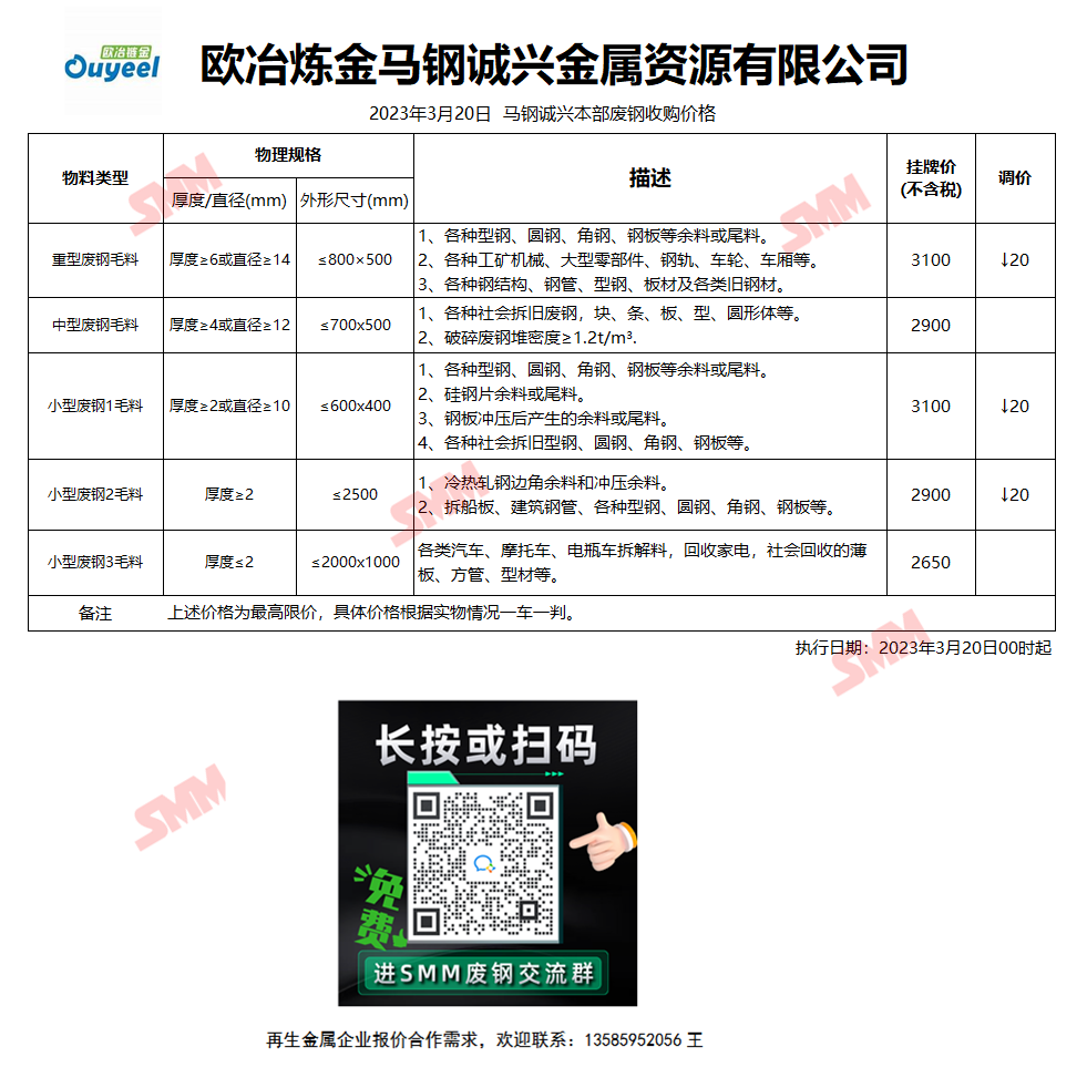 3月20日欧冶链金马钢诚兴 废钢收购报价