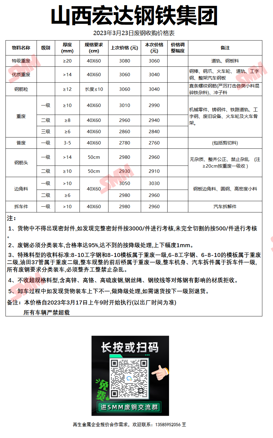 今日山西宏达钢铁 废钢收购报价已更新,有货的朋友欢迎联系我们!