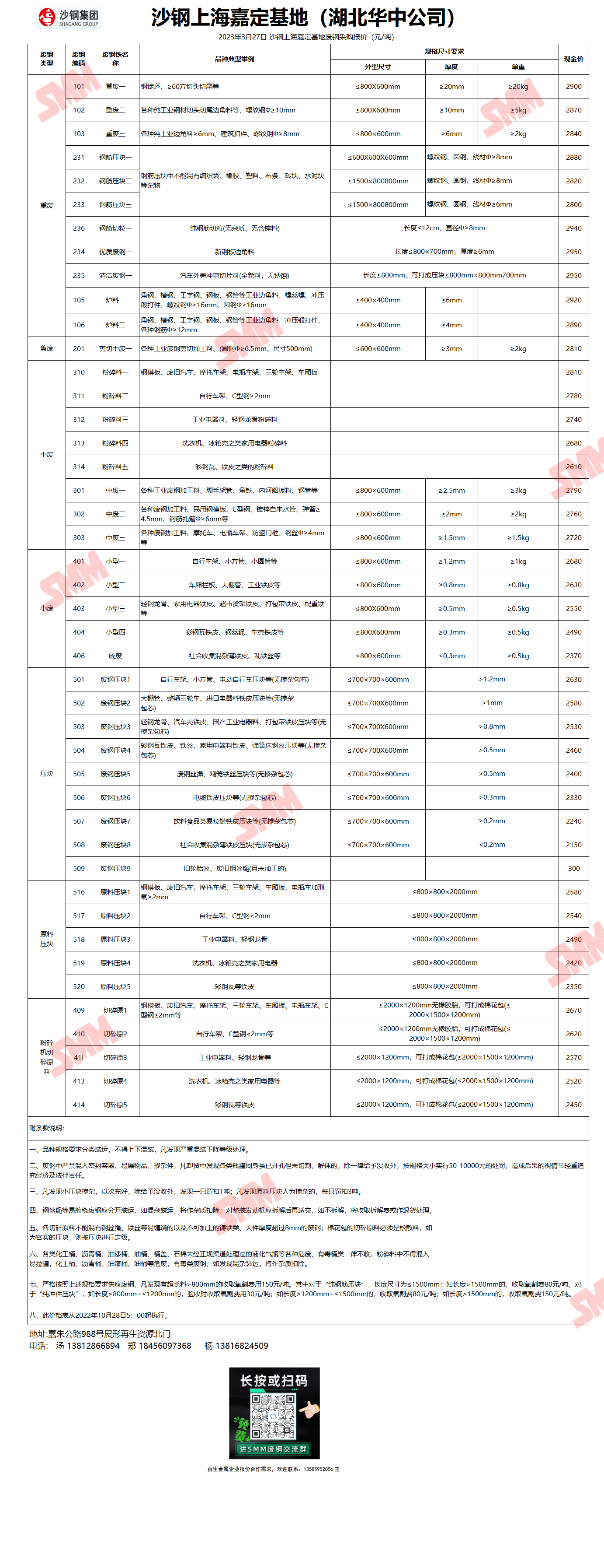 3月27日沙钢上海嘉定基地 废钢采购报价