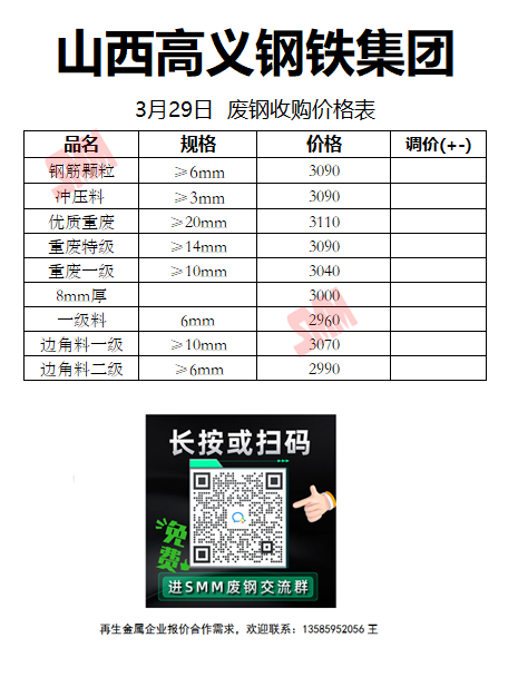 3月29日山西高义钢铁 废钢收购报价
