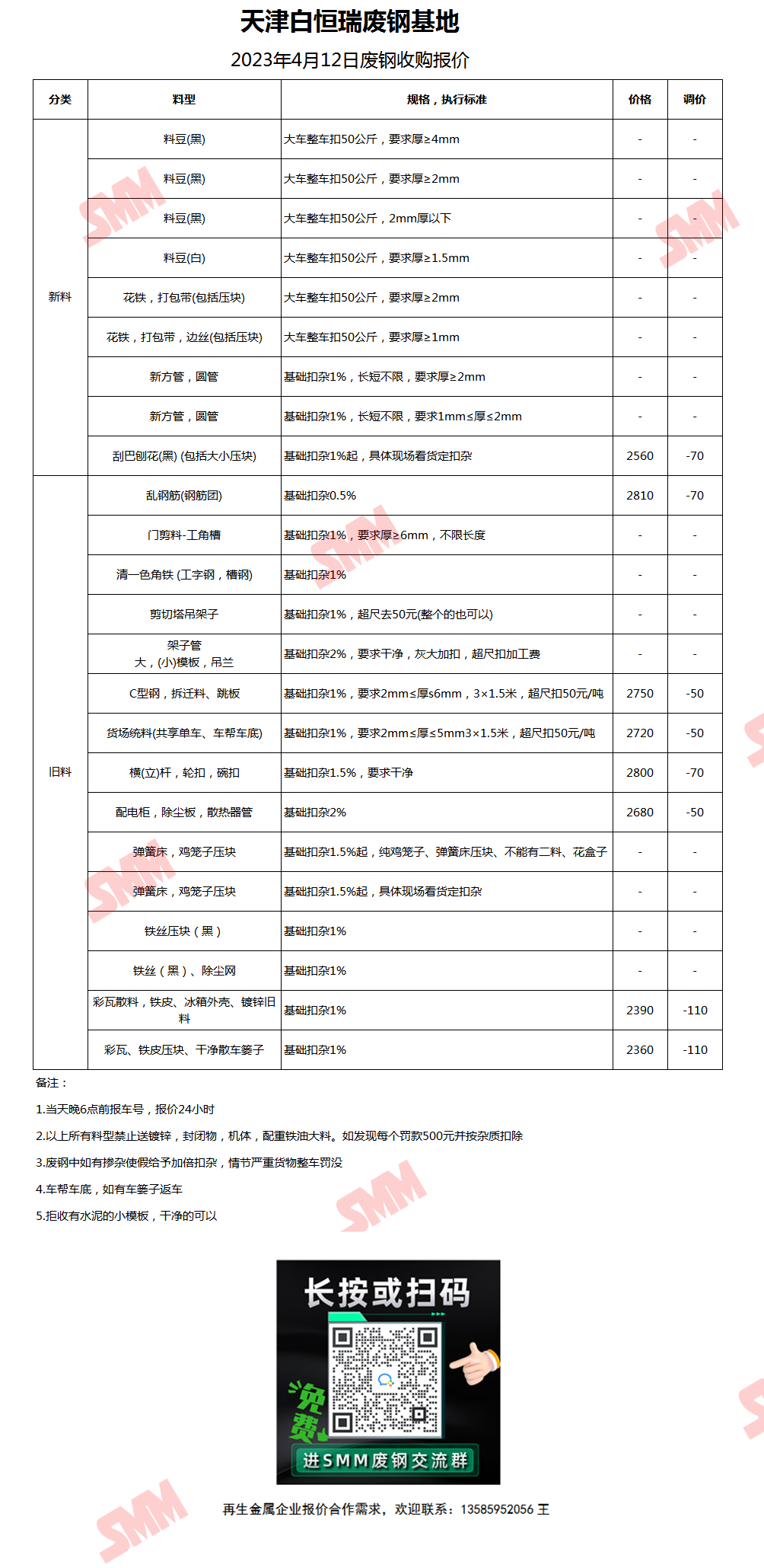 今日天津白恒瑞 废钢收购报价已更新,有货的朋友欢迎联系我们!