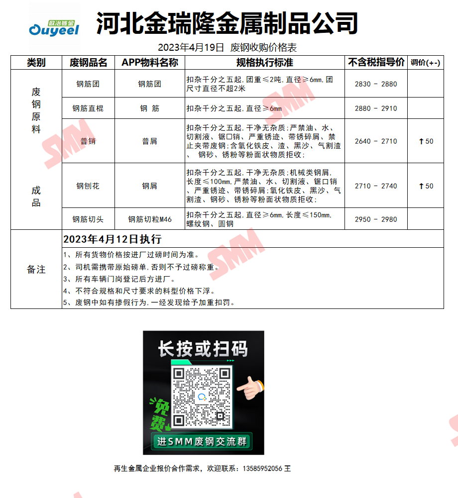 4月19日河北金瑞隆钢铁 废钢收购报价