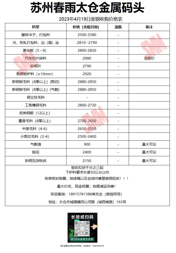 4月19日苏州春雨 废钢收购报价