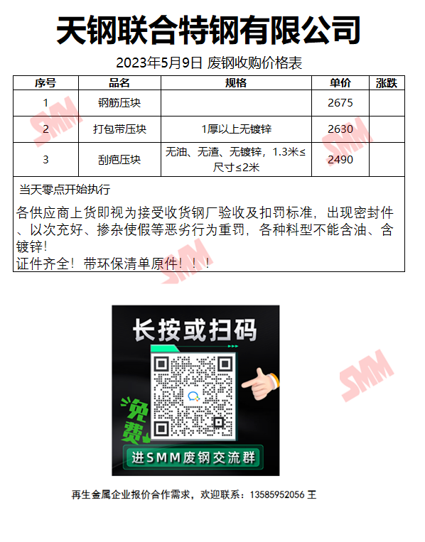 今日天钢联合特钢 废钢收购报价已更新,有货的朋友欢迎联系我们!