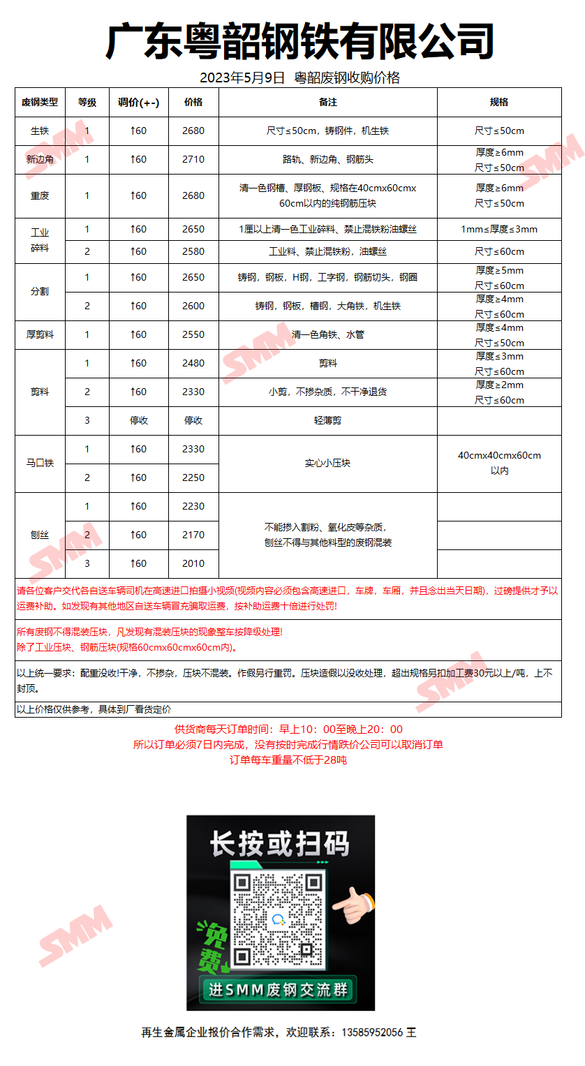 今日广东粤韶钢铁 废钢收购报价已更新,有货的朋友欢迎联系我们!