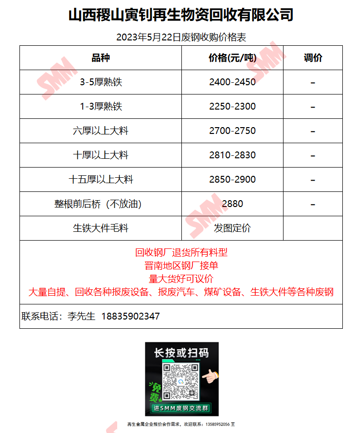 5月22日山西稷山寅钊再生 废钢收购报价