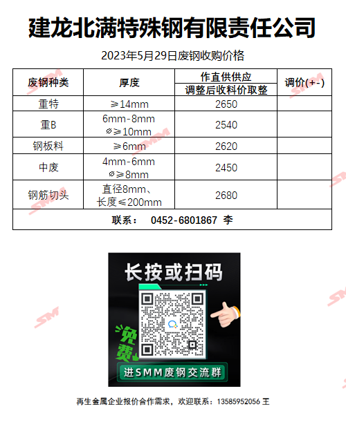 今日建龙北满钢铁 废钢收购报价已更新,有货的朋友欢迎联系我们!