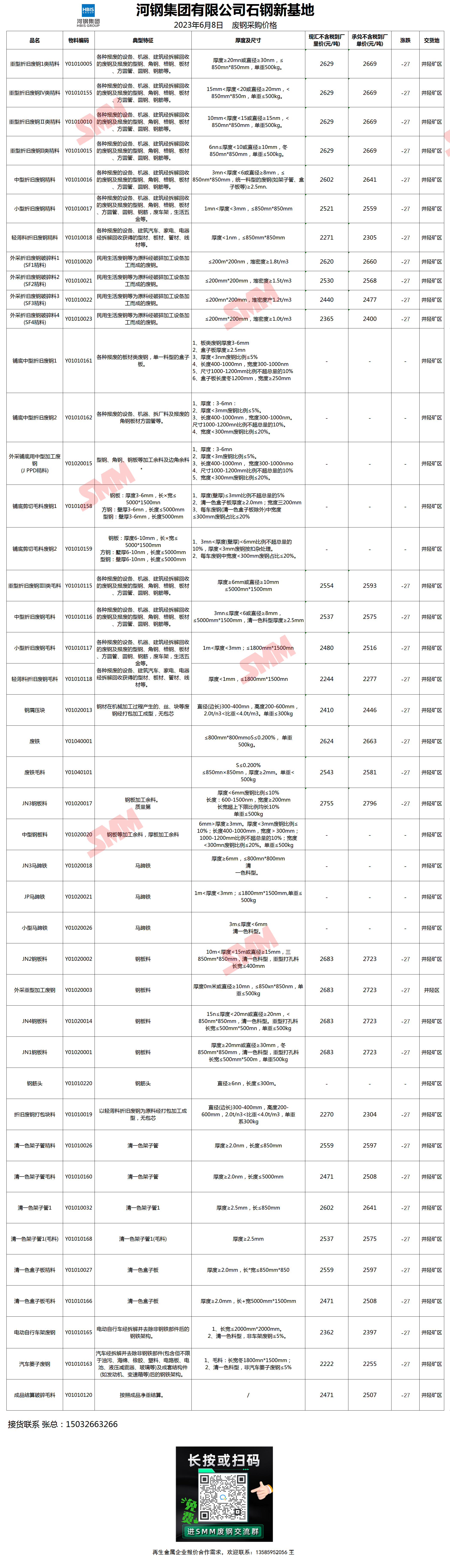 今日 河钢石钢新基地 废钢采购报价已更新,有货的朋友欢迎联系我们!