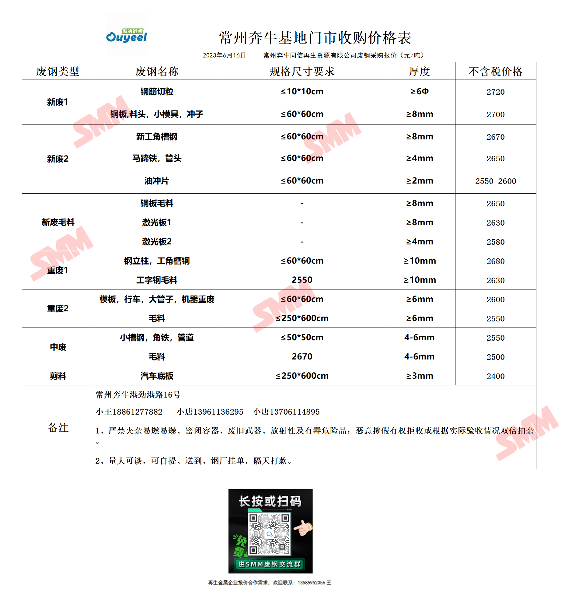 今日常州奔牛基地 废钢采购报价已更新,有货的朋友欢迎联系我们!