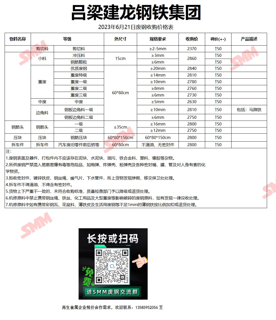 今日吕梁建龙钢铁 废钢收购报价已更新,有货的朋友欢迎联系我们!