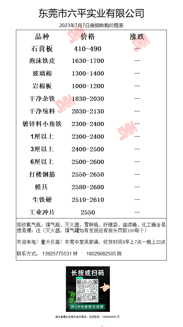 今日六平实业 废钢收购报价已更新,有货的朋友欢迎联系我们!