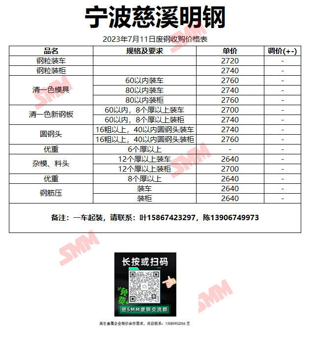 7月11日慈溪明钢 废钢收购报价