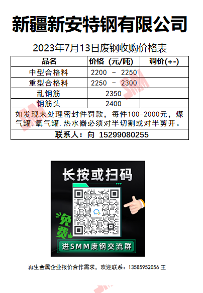 7月13日新安特钢 废钢收购报价