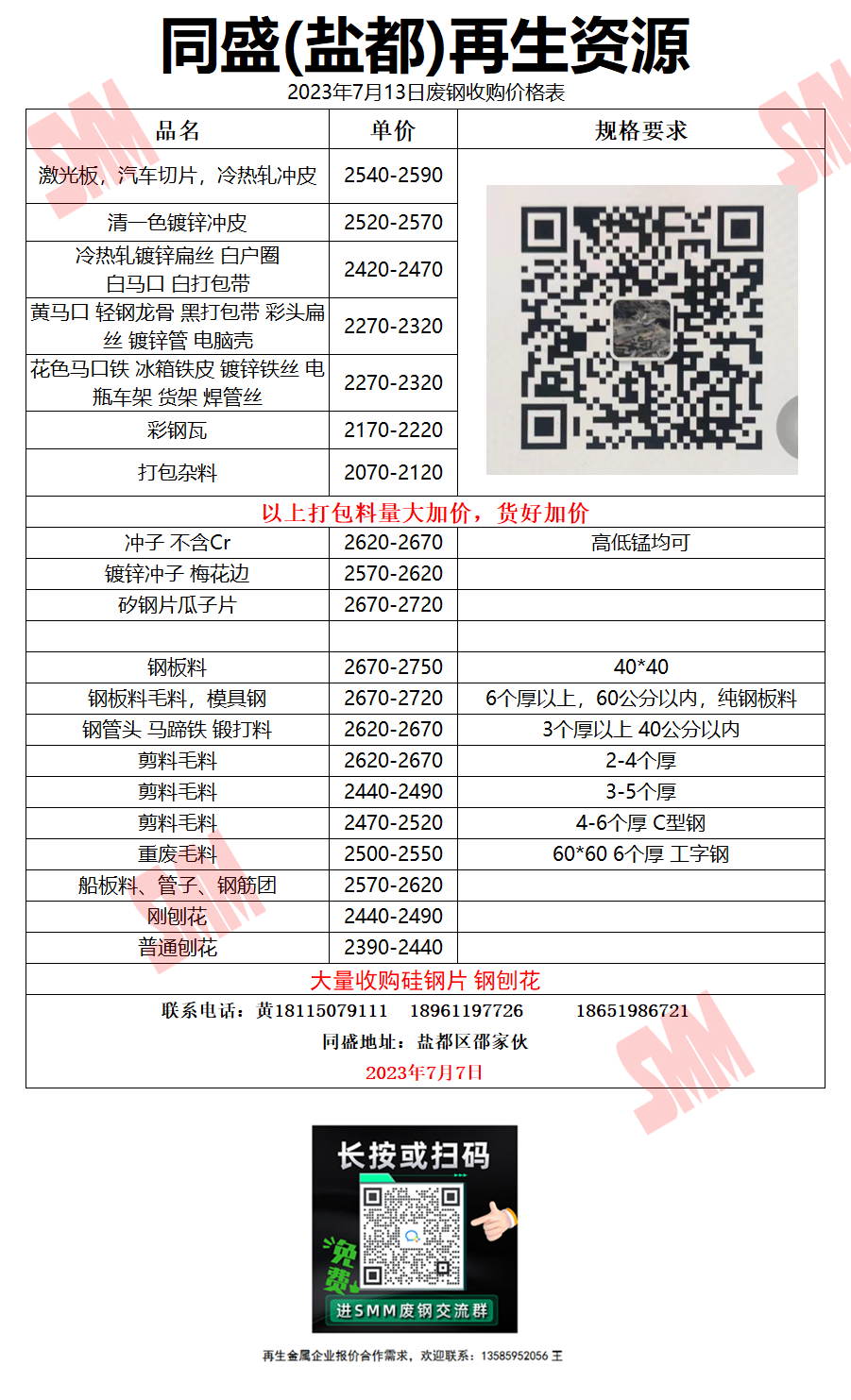 7月13日常州同盛再生 废钢收购报价