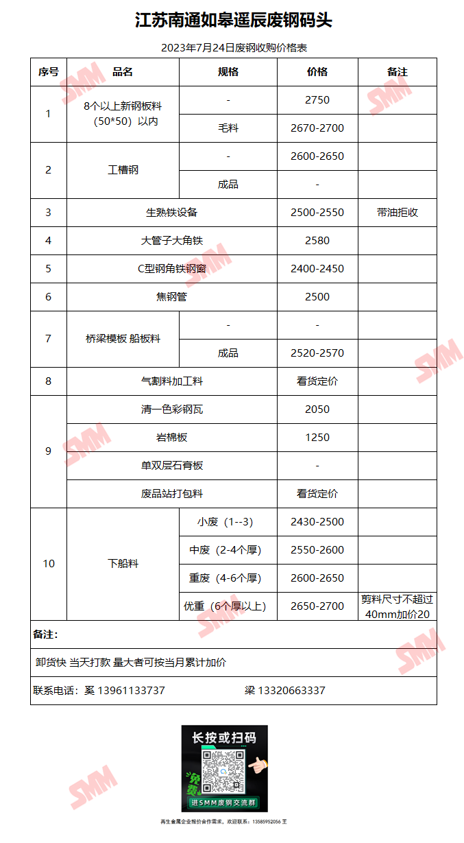 今日南通如皋遥辰 废钢收购报价已更新,有货的朋友欢迎联系我们!