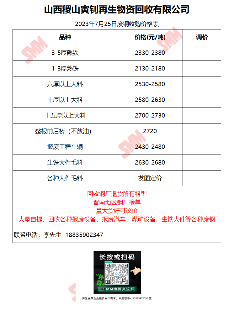 今日山西稷山寅钊再生 废钢收购报价已更新,有货的朋友欢迎联系我们!