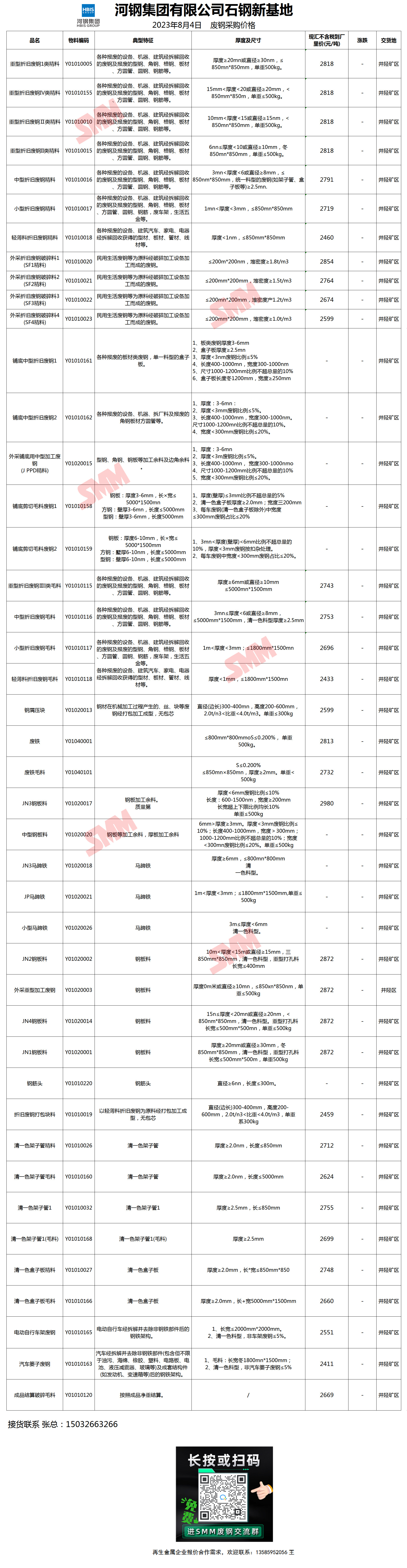 今日河钢石钢新基地 废钢采购报价已更新,有货的朋友欢迎联系我们!