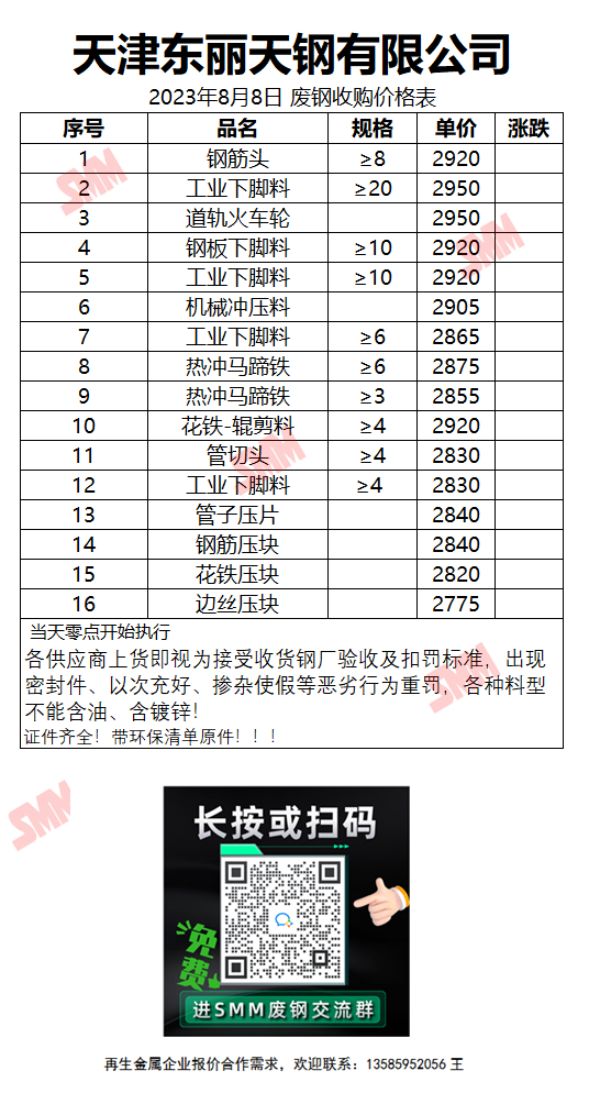 今日天津东丽天钢 废钢收购报价已更新,有货的朋友欢迎联系我们!