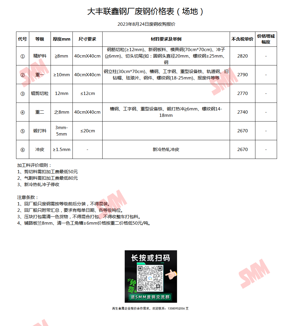 今日联鑫钢铁 废钢收购报价已更新,有货的朋友欢迎联系我们!