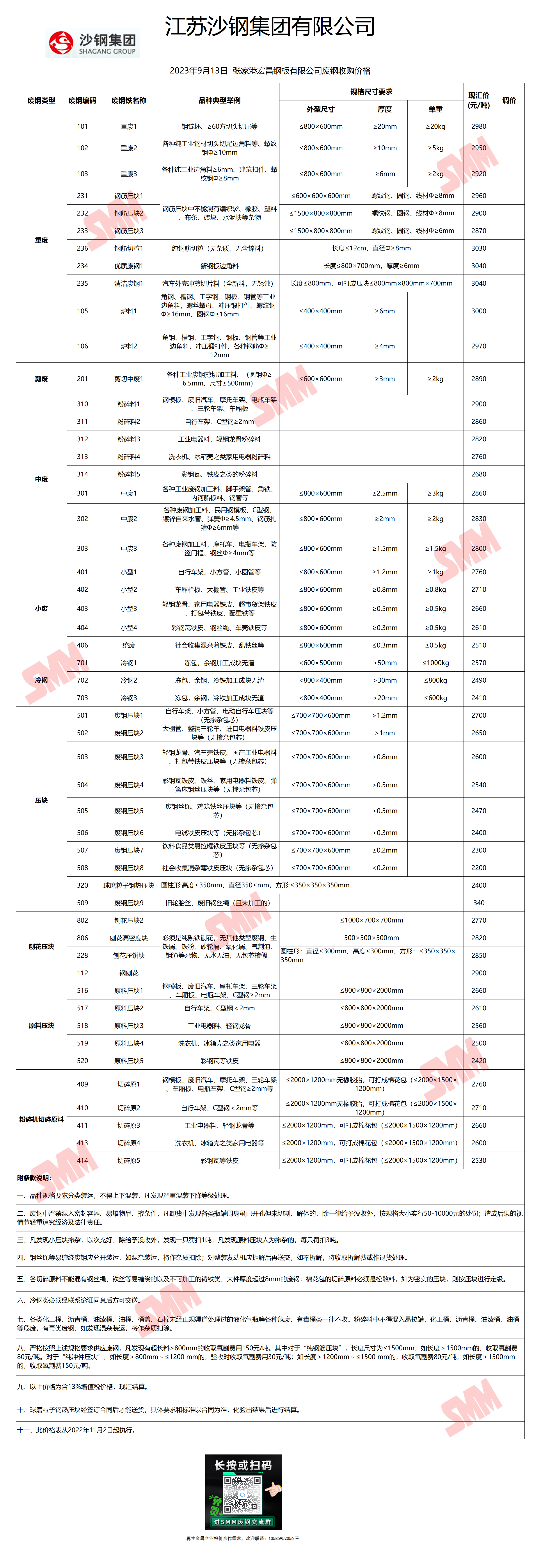 今日沙钢张家港基地 废钢收购报价已更新,有货的朋友欢迎联系我们!