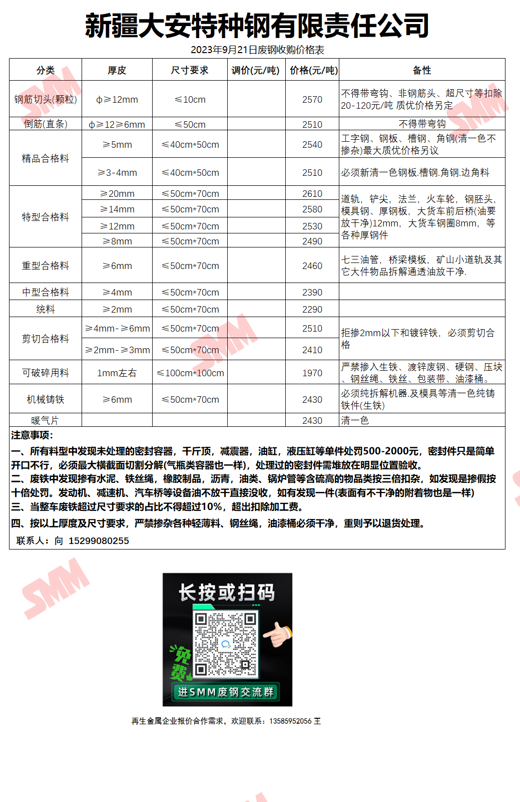 今日新疆大安钢铁 废钢收购报价已更新,有货的朋友欢迎联系我们!