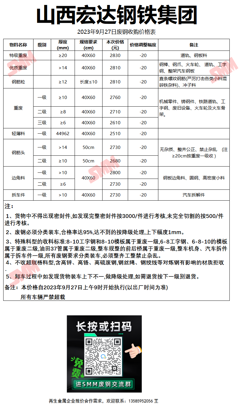 今日山西宏达钢铁 废钢收购报价已更新,有货的朋友欢迎联系我们!