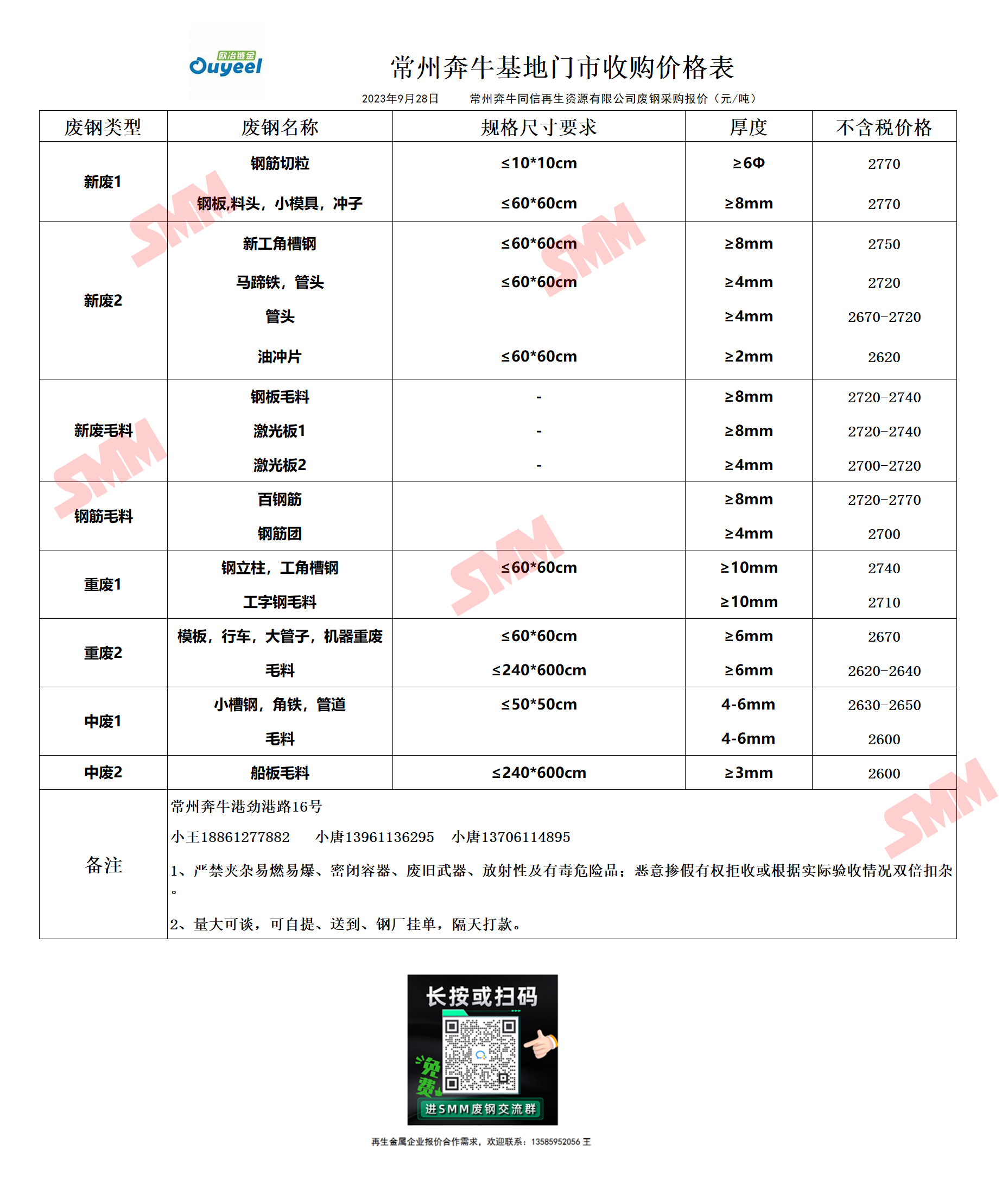 9月28日常州奔牛基地 废钢采购报价
