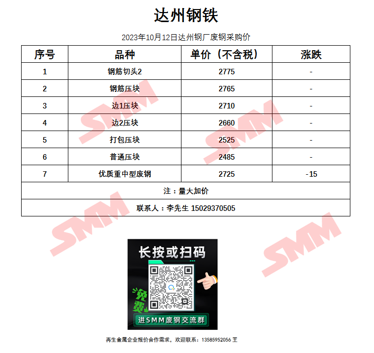 今日达州钢铁 废钢采购报价已更新,有货的朋友欢迎联系我们!