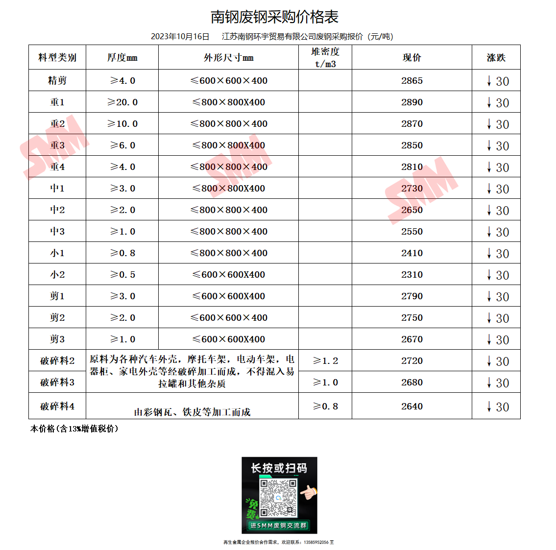 今日南京钢铁 废钢采购报价已更新,有货的朋友欢迎联系我们!