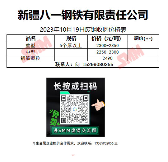 10月19日新疆八一钢铁 废钢收购报价