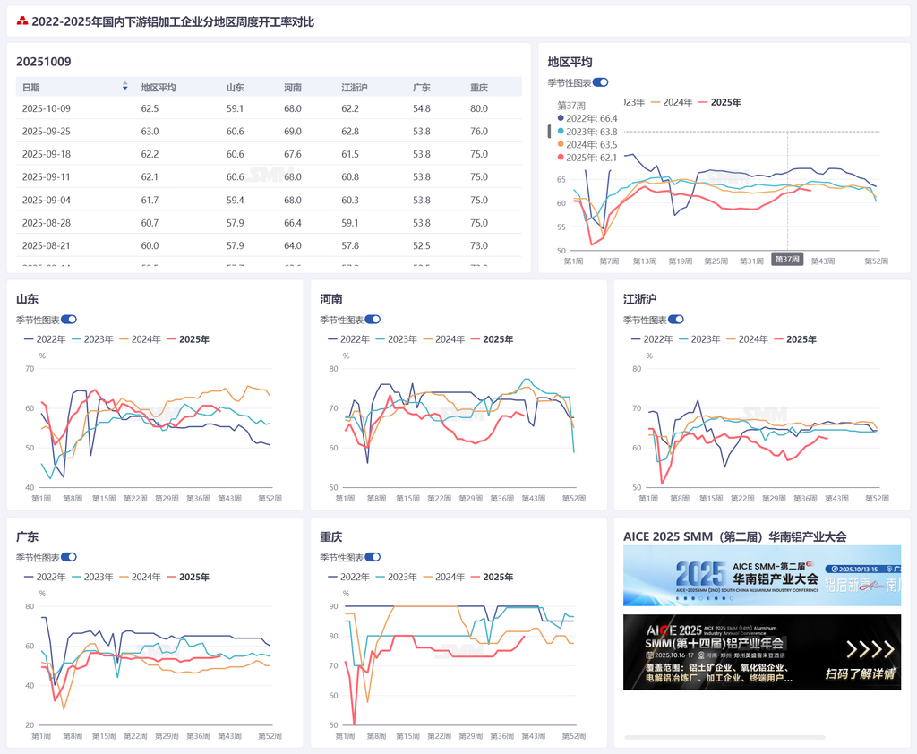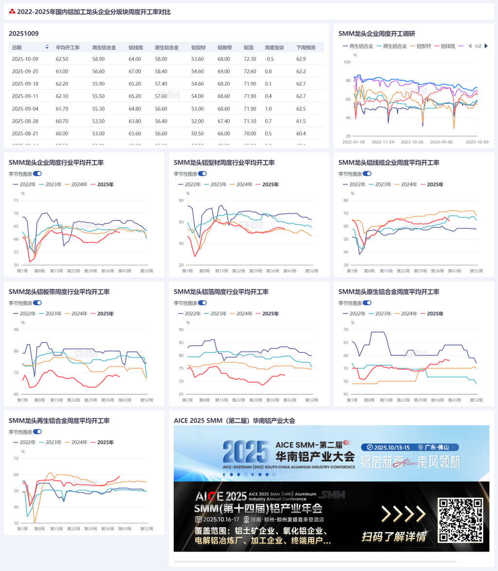 国庆长假扰动下各下游板块韧性凸显 铝加工开工率环比下降至62.5% 【SMM下游周度调研】
