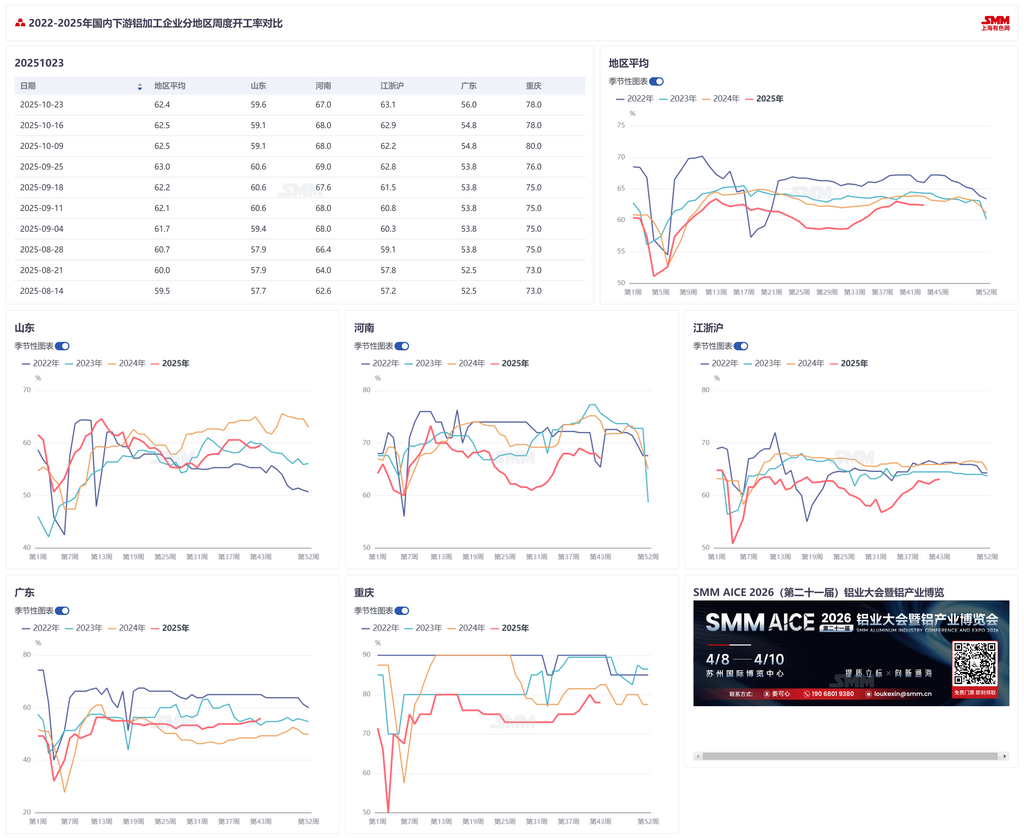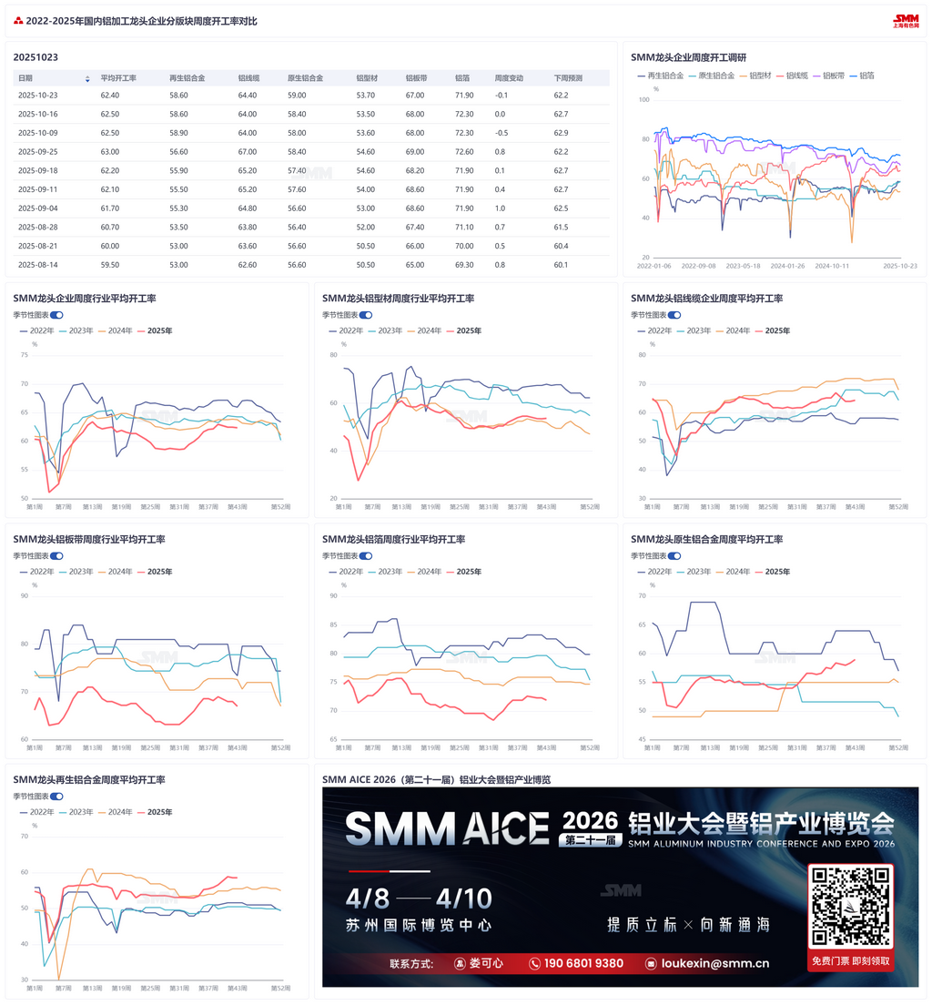 铝加工开工率微降至62.4% 旺季尾声内部分化加剧 【SMM下游周度调研】